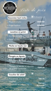 Prix Liste de prix des excursions de Cap Caraibes Pour obtenir davantage d’informations, veuillez consulter l’onglet dédié à l’excursion choisie. Share on Facebook Share Share on TwitterTweet Share on Pinterest Share Share on LinkedIn Share Share on Digg Share